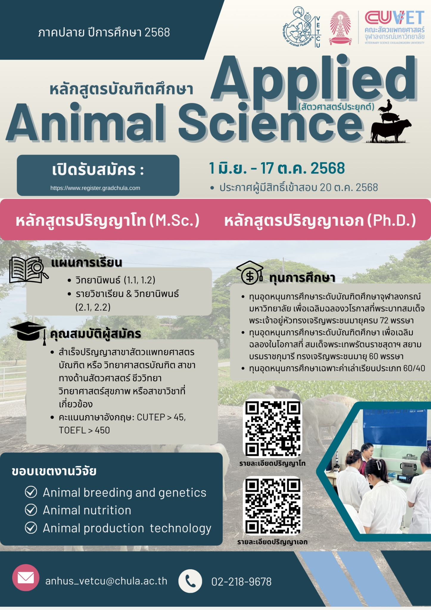 ภาควิชาสัตวบาล คณะสัตวแพทยศาสตร์ จุฬาลงกรณ์มหาวิทยาลัย ชั้น 10 อาคาร 60 ปี สัตวแพทยศาสตร์