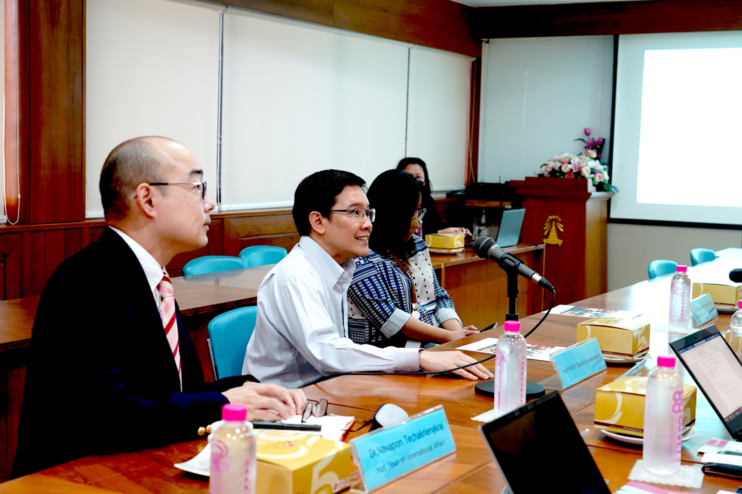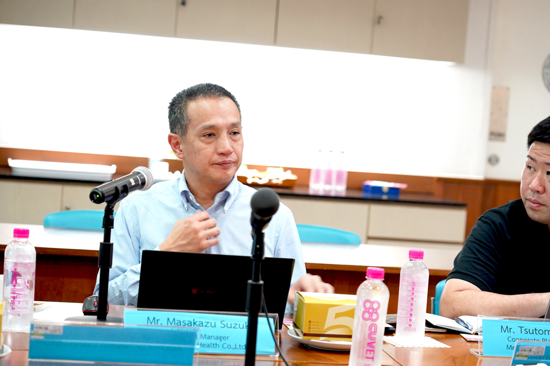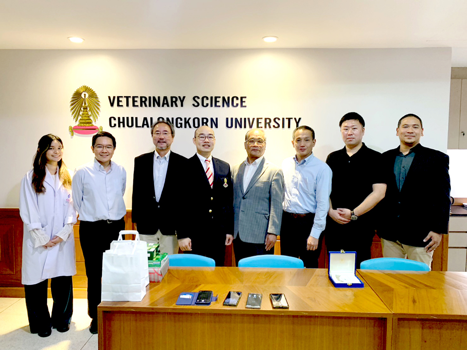 Mr.Masakazu Suzuki ผู้จัดการทั่วไป และทีมผู้บริหารจาก Meiji Animal Health Co., Ltd. ประเทศญี่ปุ่น เข้าหารือกับผู้บริหารคณะสัตวแพทยศาสตร์ จุฬาลงกรณ์มหาวิทยาลัย ได้แก่ อ.น.สพ.ดร.นวพล เตชะเกรียงไกร ผู้ช่วยคณบดีฝ่ายวิรัชกิจ ผศ.ดร.น.สพ.ดร.ธราดล เหลืองทองคำ อาจารย์ประจำภาควิชาสัตวแพทยสาธารณสุข พร้อมด้วยสัตวแพทย์ โรงพยาบาลสัตว์ กรุงเทพฯ คณะสัตวแพทยศาสตร์ จุฬาลงกรณ์มหาวิทยาลัย ในความร่วมมือด้านวิชาการ และการวิจัยในอนาคต พร้อมทั้งเยี่ยมชมการดำเนินงานของโรงพยาบาลสัตว์กรุงเทพฯ เมื่อวันที่ 25 มกราคม 2567 ณ ห้องประชุม 4 ชั้น 2 อาคารชัยอัศวรักษ์ คณะสัตวแพทยศาสตร์ จุฬาลงกรณ์มหาวิทยาลัย